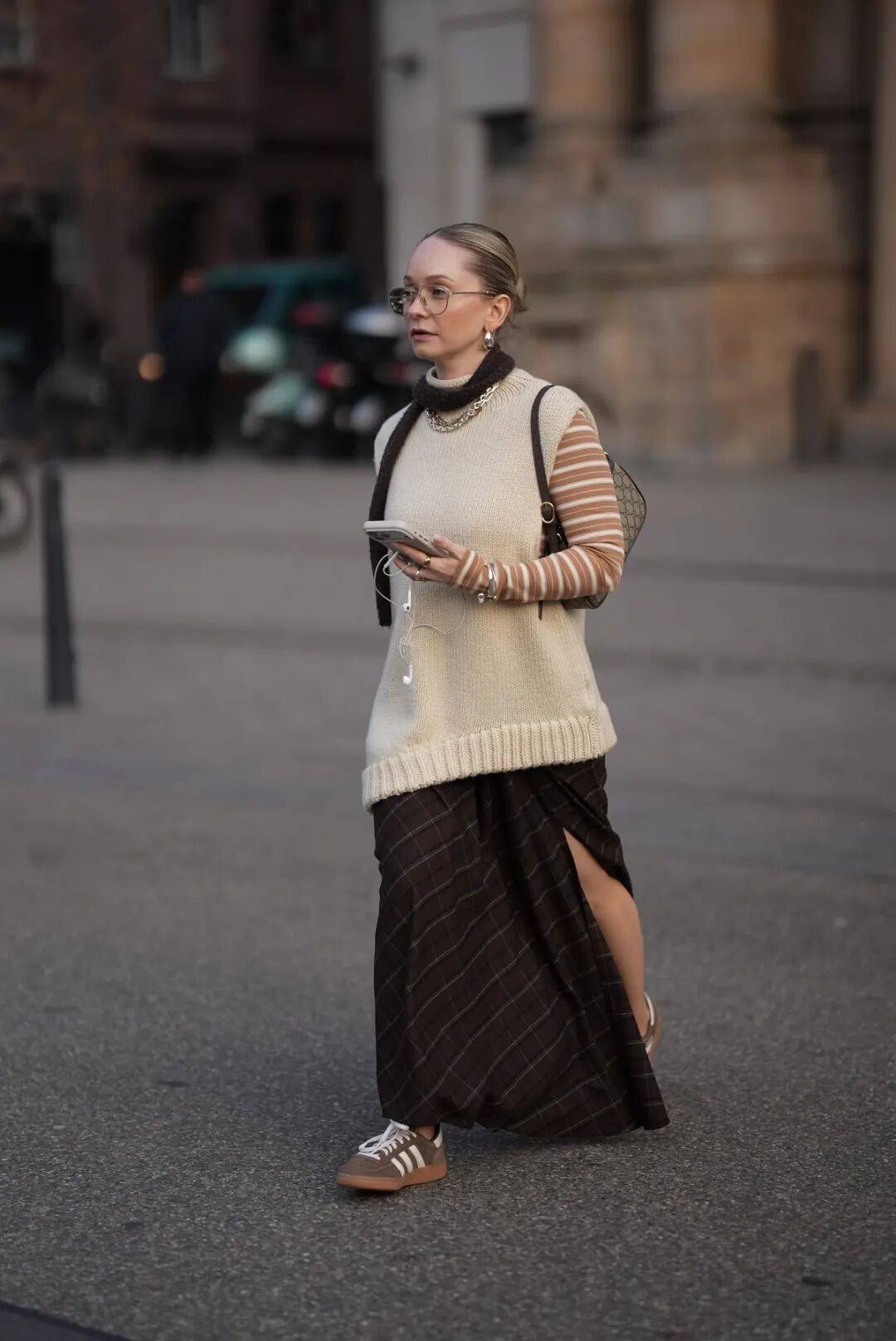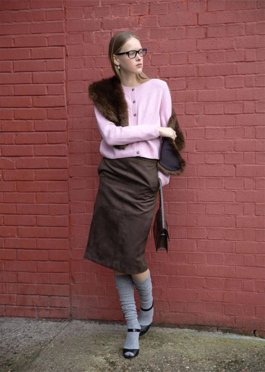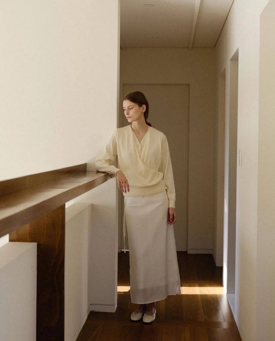 它与以往那种粗棒针的温暖不同,更倾向于薄款的细针织,织脚细密紧致,既有针织品类自带的温柔属性,又因为足够细腻而不会显得臃肿。