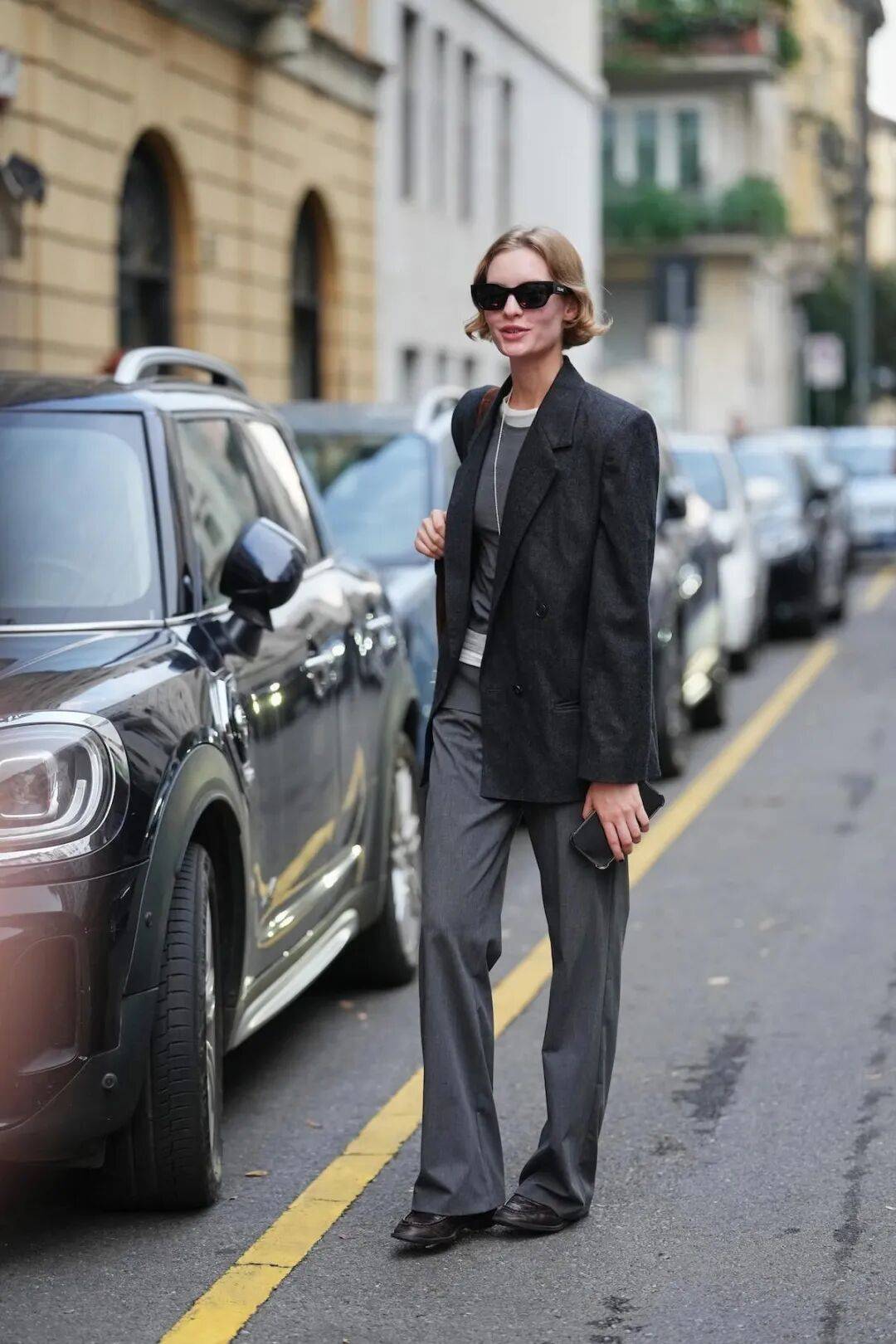 选择面料更软、颜色更浅的款式,比如雾霾蓝的静谧,或是带着微光的米色。穿上它,少了征战职场的凌厉,多了在微风中漫步的惬意。