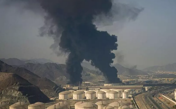 3月14日星期六,伊朗无人机袭击阿联酋富查伊拉石油设施后引爆大火。 Altaf Qadri/AP/SIPA - Altaf Qadri/AP/SIPA
