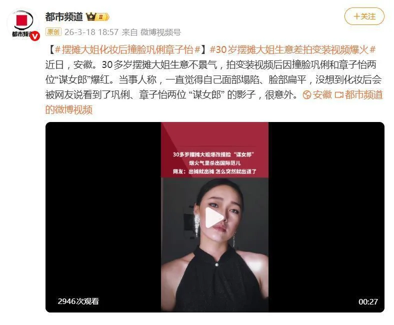 安徽一位31岁的摆摊大姐,用一条变装视频直接“杀”穿了短视频平台。只因生意冷清尝试拍视频引流,结果化妆造型后,一张脸竟同时撞上了两位国际影后——章子怡和巩俐,瞬间引爆全网。这波从市井摊贩到“国际巨星”的极致反差,让网友直呼:“这哪是摆摊大姐,分明是被地摊耽误的影后!”