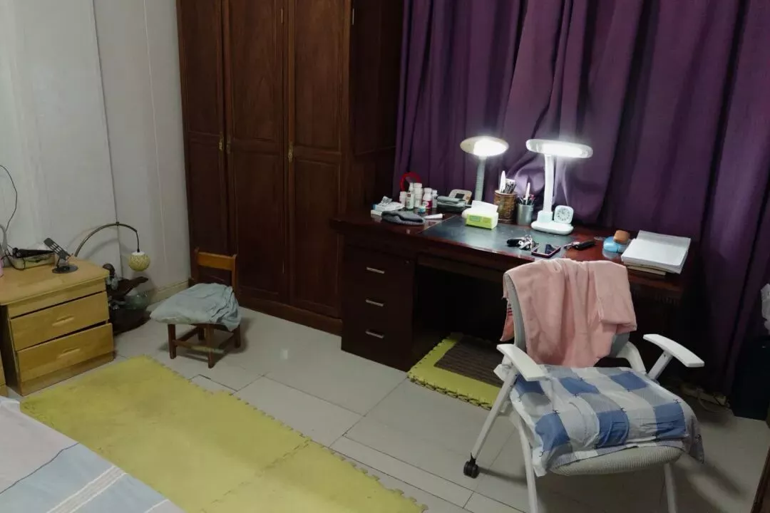 释传真居住的房间,摆有一张床、一个衣柜和一套桌椅。(图_叶丰/摄)
