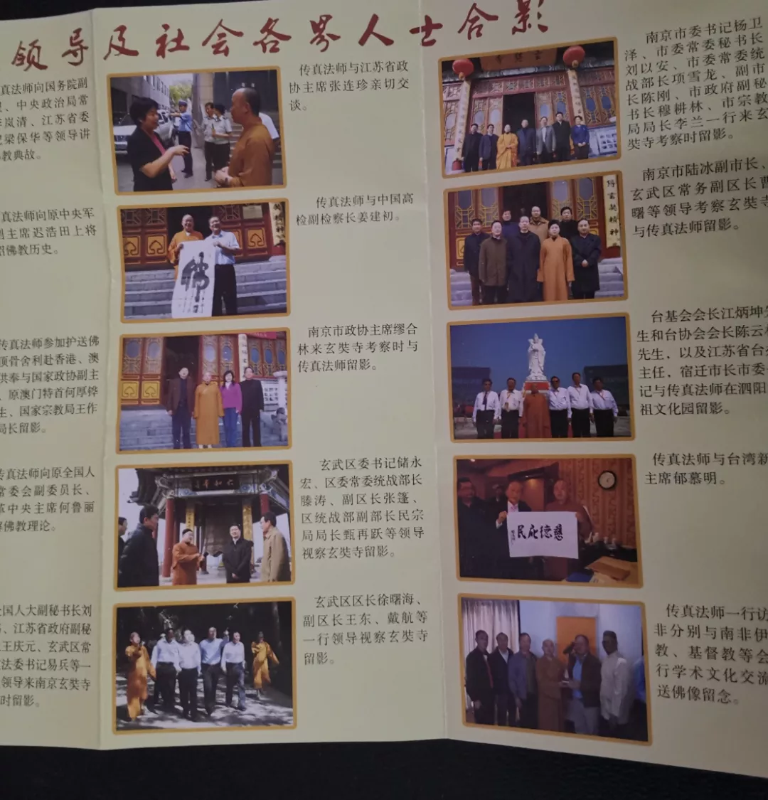 印有前南京玄奘寺住持释传真与社会各界人士合影资料的小册子。(图_叶丰/摄)