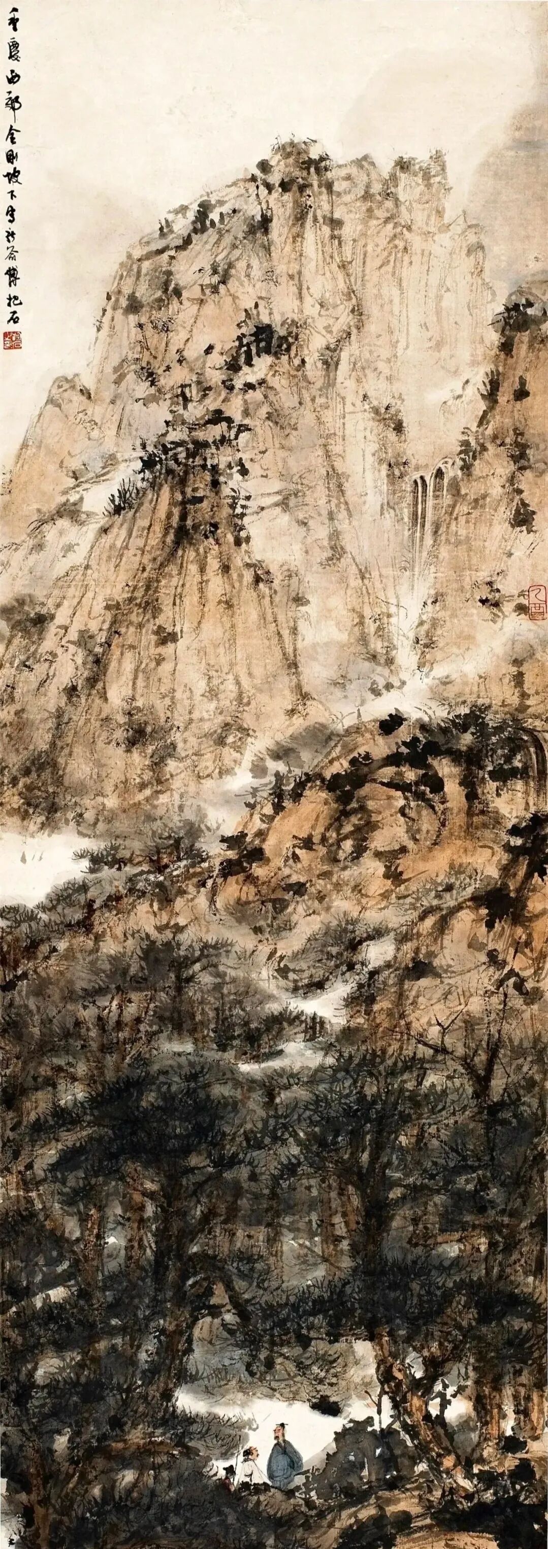 还有一张《待细把江山图画》,名字就起得好。画的是大山大水,层层叠叠的,用笔特别密,那些笔触密密麻麻地挤在一起,看着像是乱,其实一点儿不乱,笔笔都有它的去处。远看是山,近看是笔,再近看,还是山。能把这种本事练出来的人,得有那个心性,得真的跟山水成了朋友,成了亲人,才能画得出来。