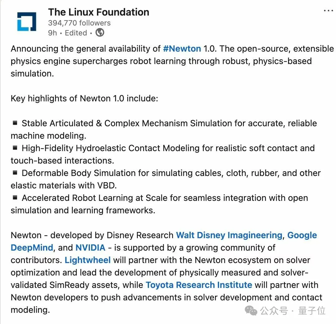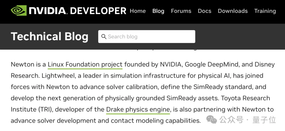 Newton是什么?NVIDIA、Google DeepMind、Disney Research三家巨头联手搞的开源物理仿真引擎,也是Linux Foundation的顶级项目。