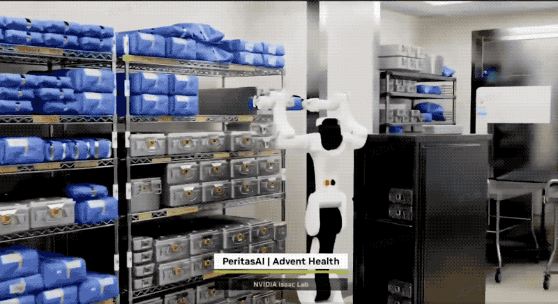 比如Peritas AI训练的手术室辅助机器人,它可以轻松从架子上拿取物品: