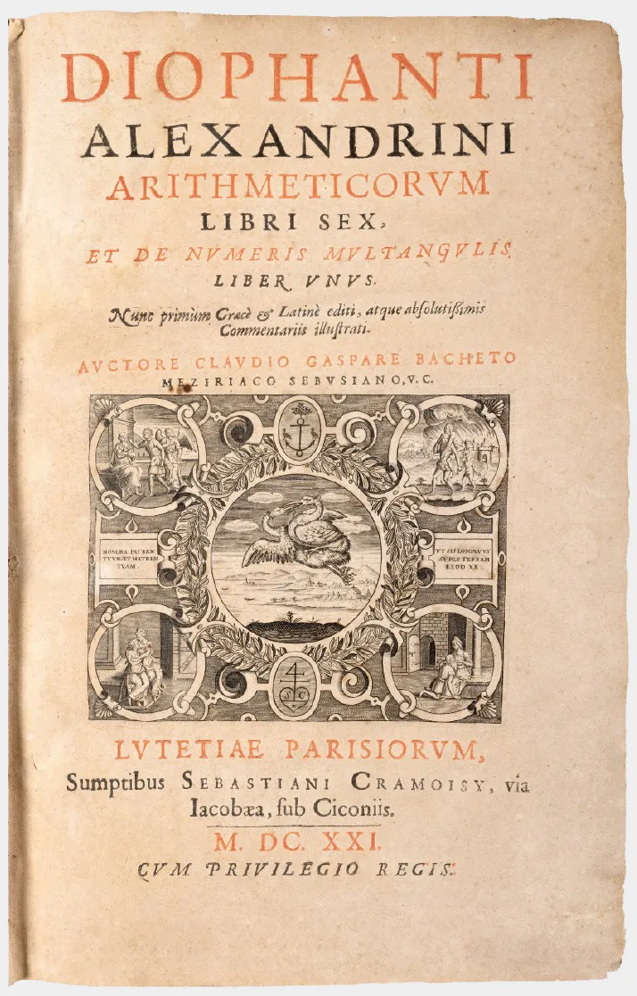 亚历山大的丢番图手稿(1621年版本)。(图/Public Domain/Commons Wikipedia)