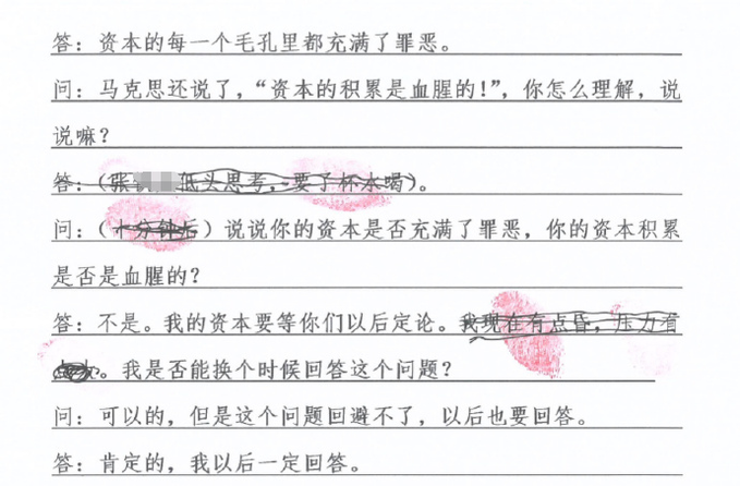 具有极大讽刺意味的是,就在这份笔录出现前不久,中共喉舌还用习近平的一句话进行宣传,即所谓的“我们始终把民营企业和民营企业家当作自己人”。