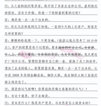 从笔录的对话看,这是中共公安对一位有着“上亿资产”的民营企业老板的询问笔录。