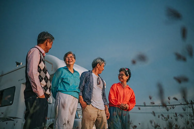 喜欢自驾游的老年人把露营车停在野外。视觉中国|图