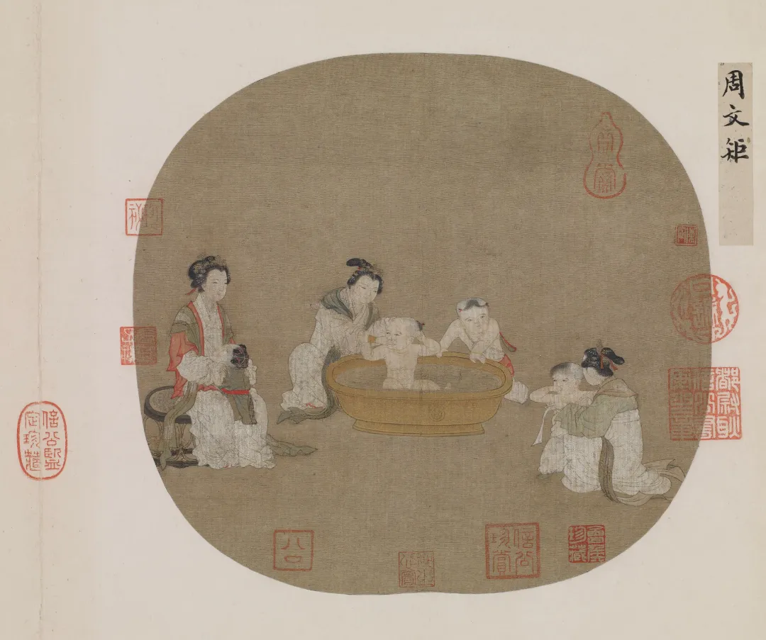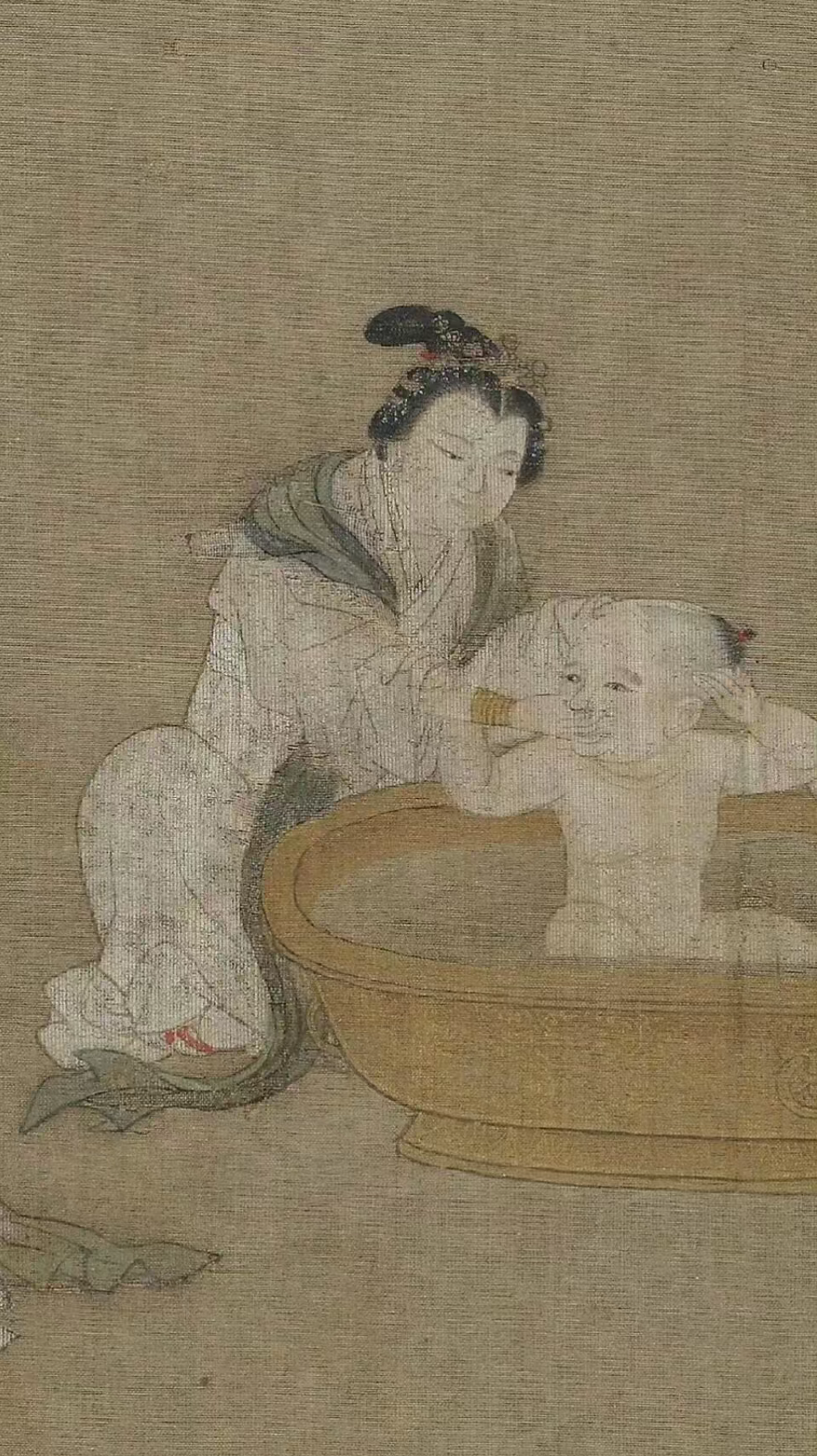 周文矩浴婴仕女图,洗澡也能画出烟火气艺画