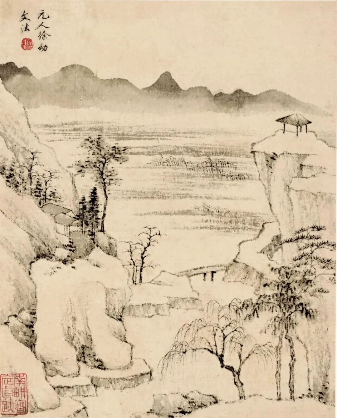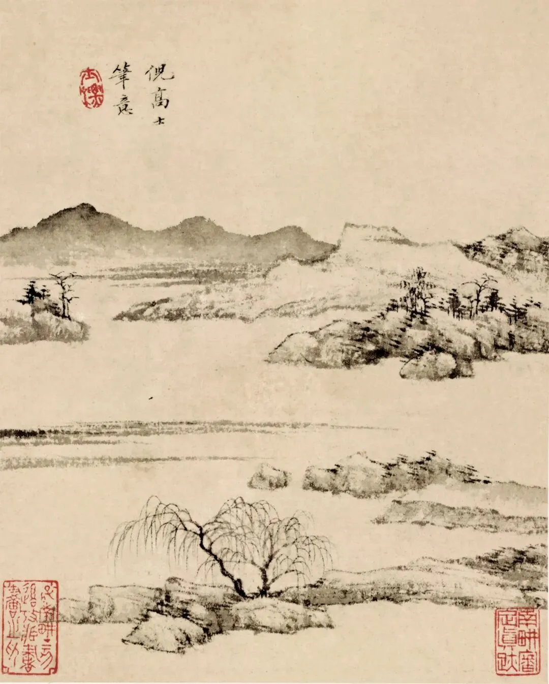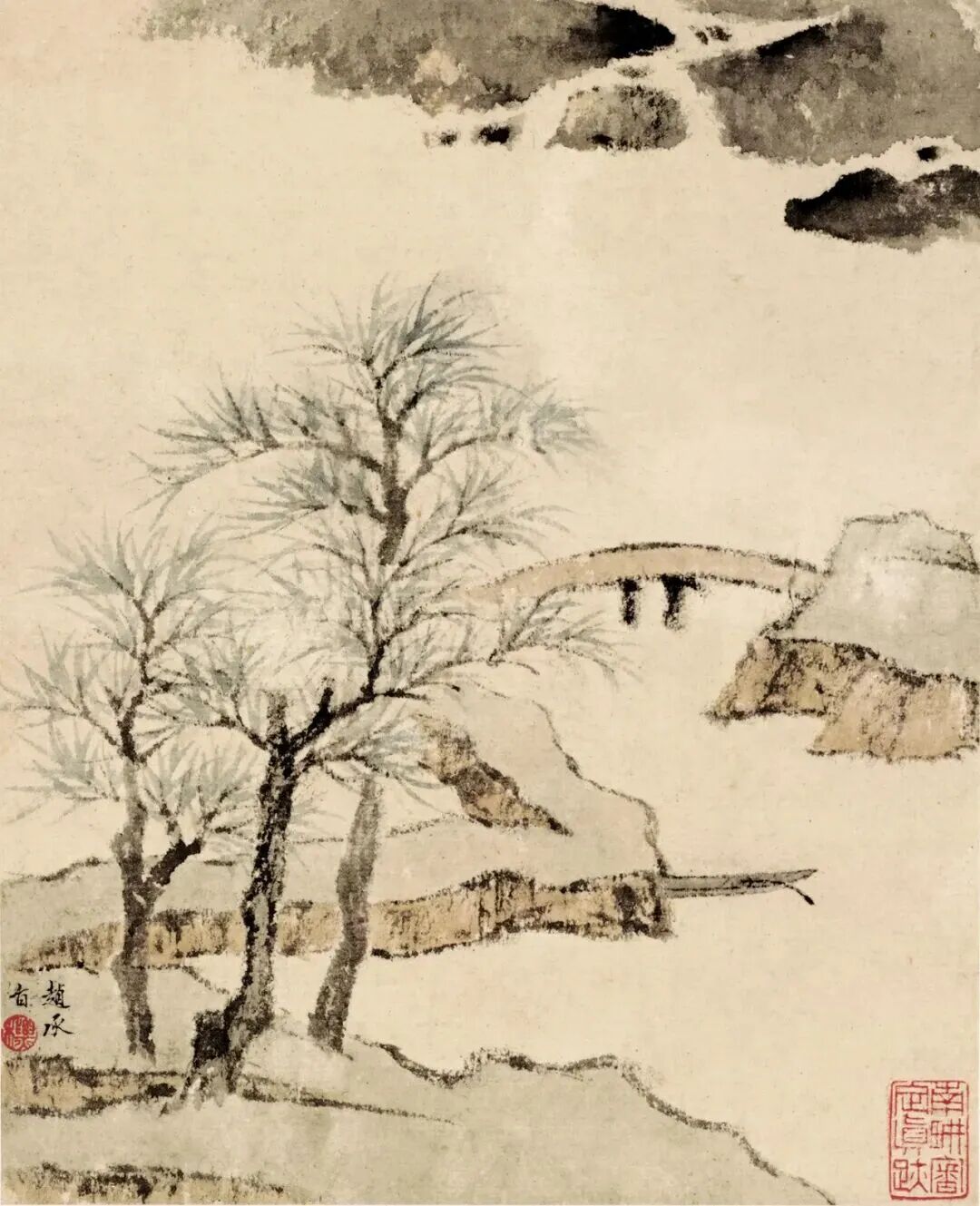 查士标的山水画,初看静悄悄,没一点热闹劲儿,可细品,里头全是话。