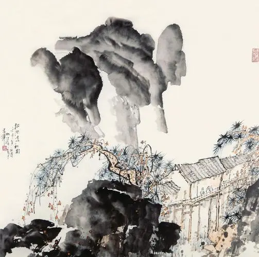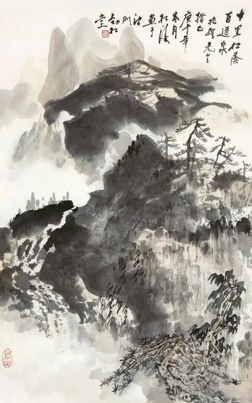 他画山,不搞那些虚头巴脑的,实实在在。山峰有高有低,有胖有瘦,就跟咱身边的人一样,各有各的脾气。有的山陡得像要倒下来,可仔细一看,又被他画得稳稳当当,让人心里踏实。