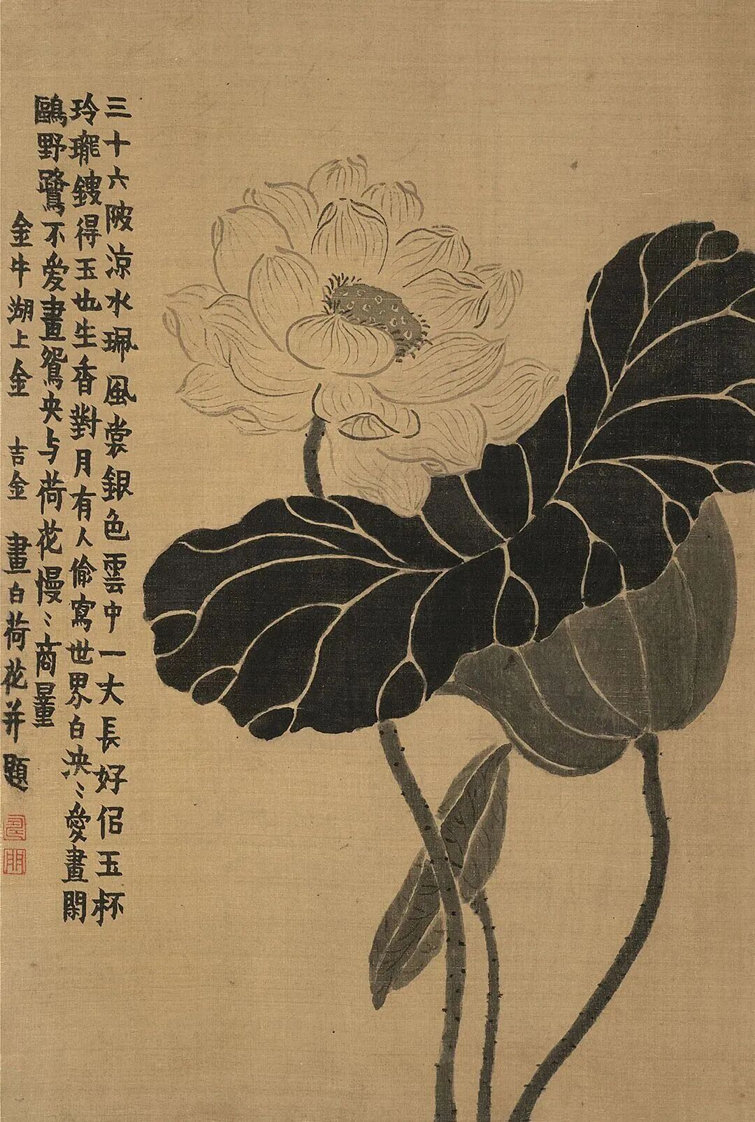 再说说这题款,金农的“漆书”一上手,画面立马就活了。他题诗不按套路出牌,有时候自嘲,有时候调侃,就像跟画里的植物聊天似的。比如画荷花,他题:“荷花开了,银塘悄悄,新凉早,碧翅蜻蜓多少?”这哪是题诗,简直就是跟荷花说悄悄话呢!