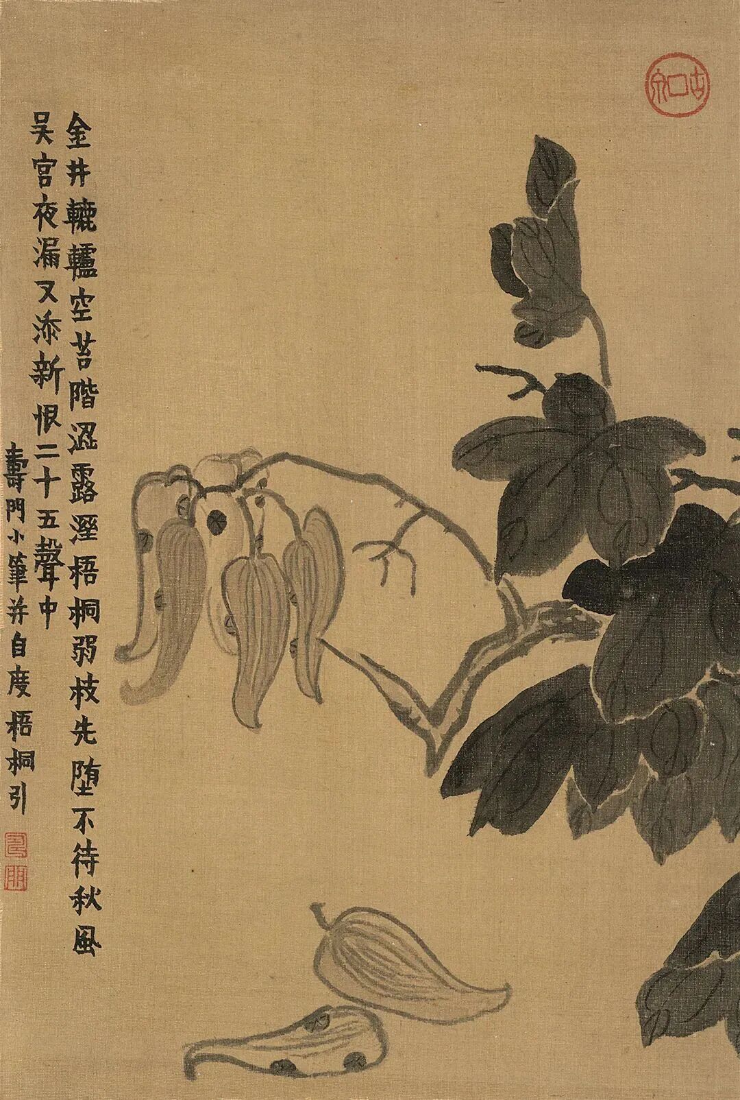 金井辘轳空苔阶,涩露湿梧桐。弱枝先堕,不待秋风。吴宫夜漏,又添新恨二十五声中。寿门小笔并自度梧桐引。
