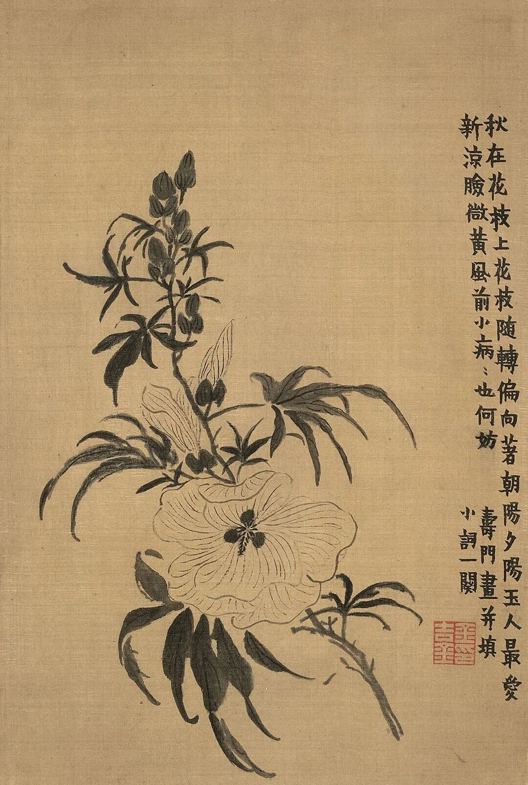秋在花枝上。花枝随转,偏向着,朝阳夕阳。玉人最爱新凉。脸微黄。风前小病,病也何妨?寿门画并填小词一阕。