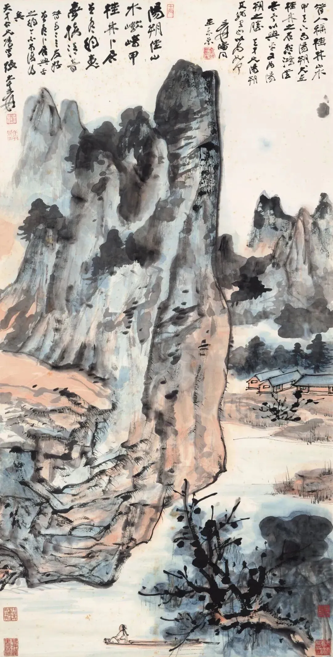 这画背后还有段往事呢!1937年,张大千路过兴坪,跟徐悲鸿、李济深游漓江,被这地儿迷住,李济深还送他土地,想让他和徐悲鸿在这儿住。可惜后来没成,张大千就画了这画,题识里还念叨着“卜居兴平之约,今不可复得矣”,满满都是遗憾。这画啊,不光是山水美,还藏着一段让人唏嘘的往事呢!