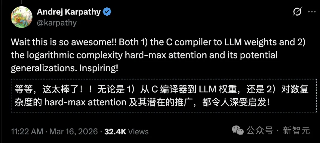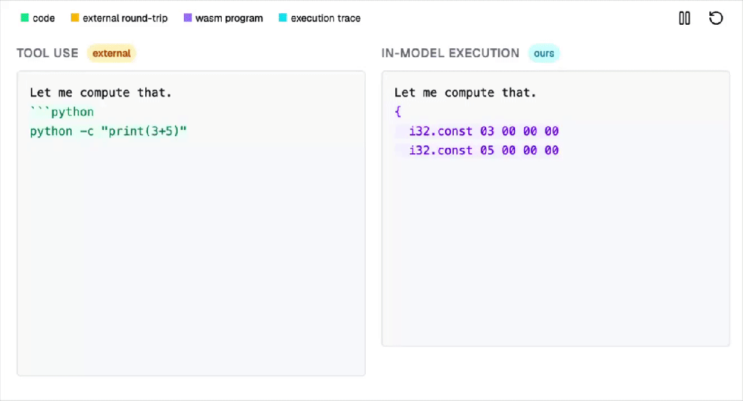 注意,不是外挂插件,不是调用工具(Tool Use),而是通过一种近乎疯狂的硬编码方式,将一个WebAssembly (WASM) 解释器无损地(Losslessly)嵌入到了Transformer模型的权重之中。