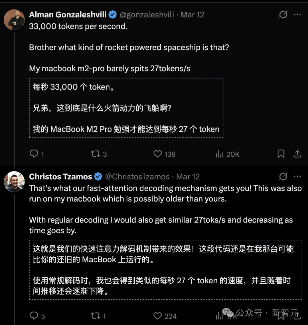 要知道MacBook M2 Pro的解码速度才每秒27个智元(token),每秒33000个智元(Token)堪称火箭般的速度,让人难以想象!