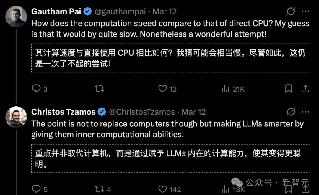 当然,用LLM的计算速度无法与CPU相比,这项研究的关键意义在于赋予LLM内在计算能力,真正教会AI算数,让它更聪明。