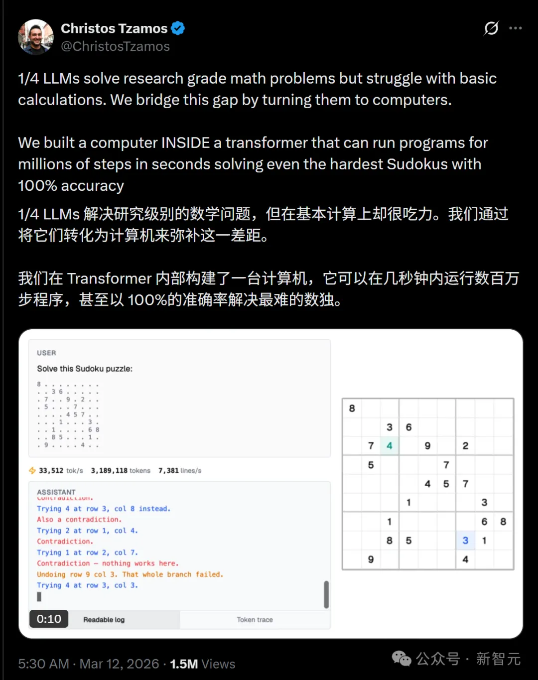 炸裂!就在刚刚,一位MIT博士,在Transformer里造出个计算机。现在,模型一举洗刷「9.11与9.9哪个大」的耻辱,几秒内运行数百万步程序,世界最难数独准确率100%!大模型的能力边界,从此彻底改变。