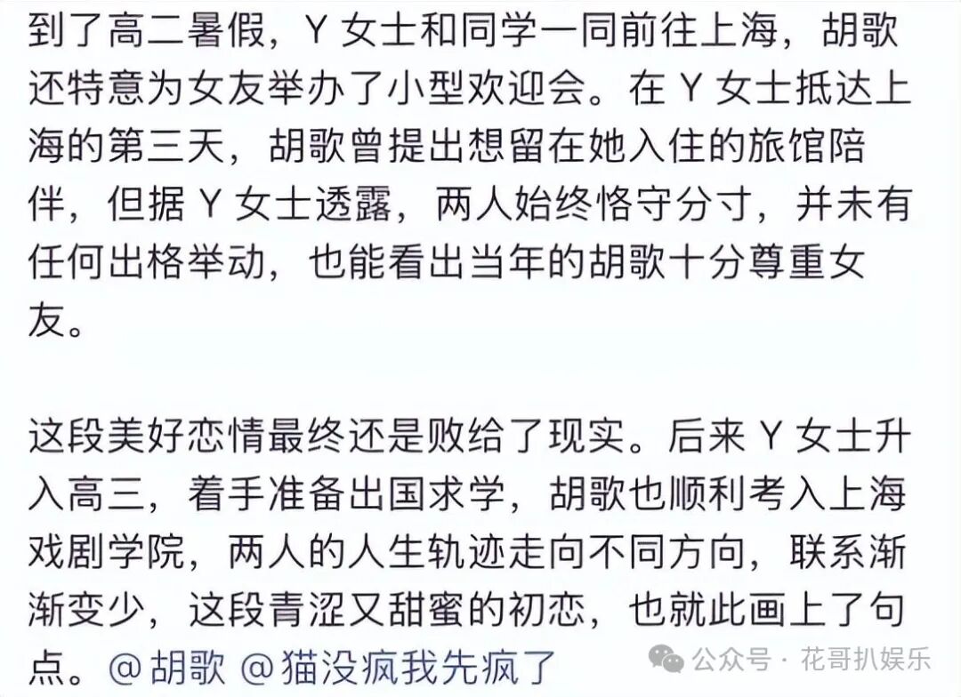 胡歌和初恋女友的瓜曝光花哥扒娱乐