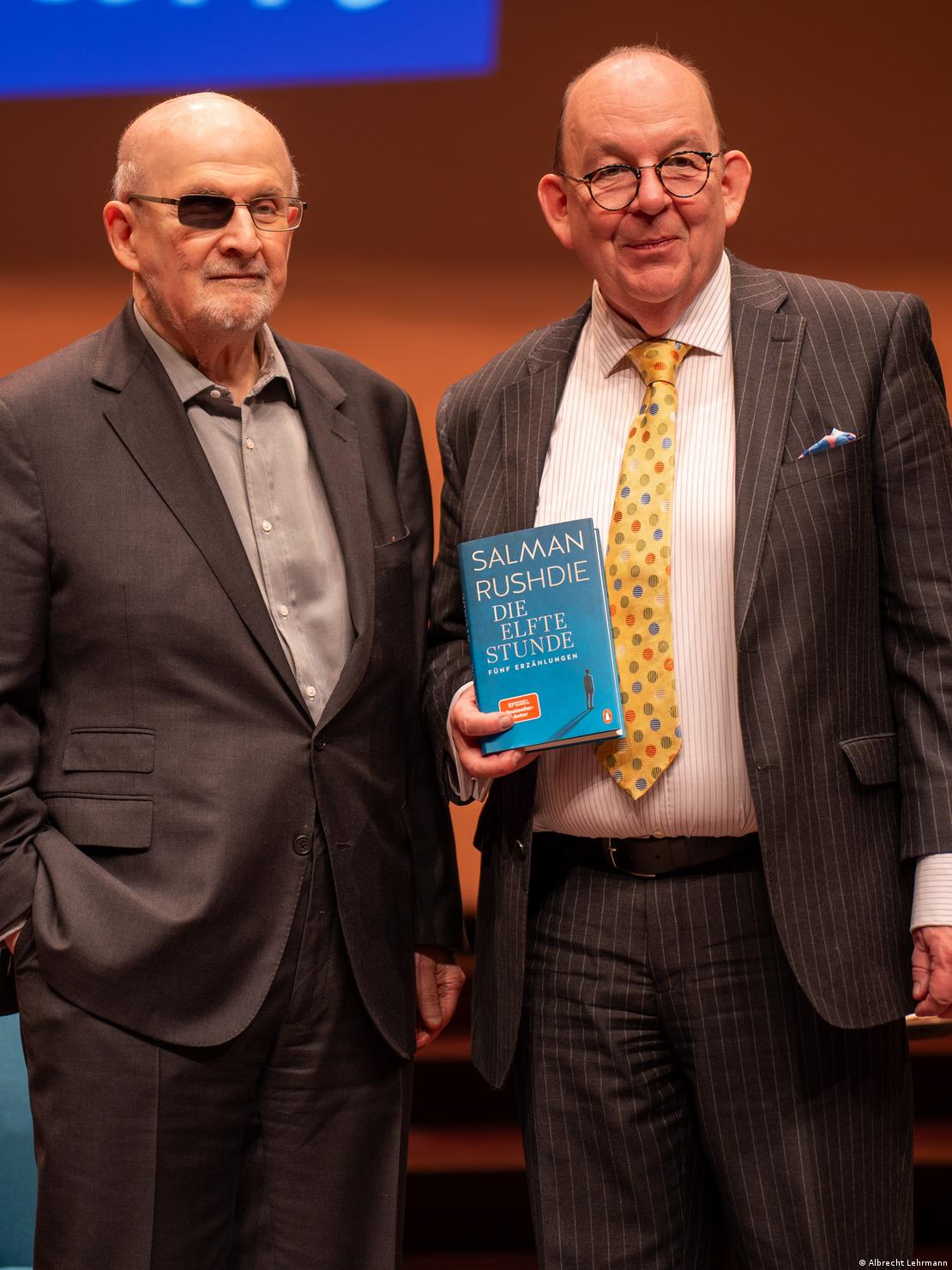 鲁西迪在波茨坦指出,政治谎言就是用谎言掩盖真相,而文学,是对抗这种虚假的武器。图像来源: Albrecht Lehrmann
