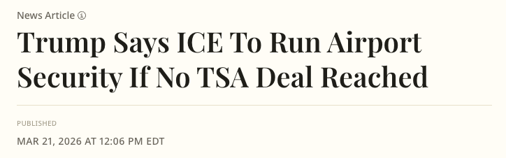 由于政府部分停摆期间运输安全管理局(TSA)工作人员的薪资发放被暂停,机场已连续数周出现混乱局面。在此背景下,川普总统提出,可能动用ICE人员承担机场安保职责。