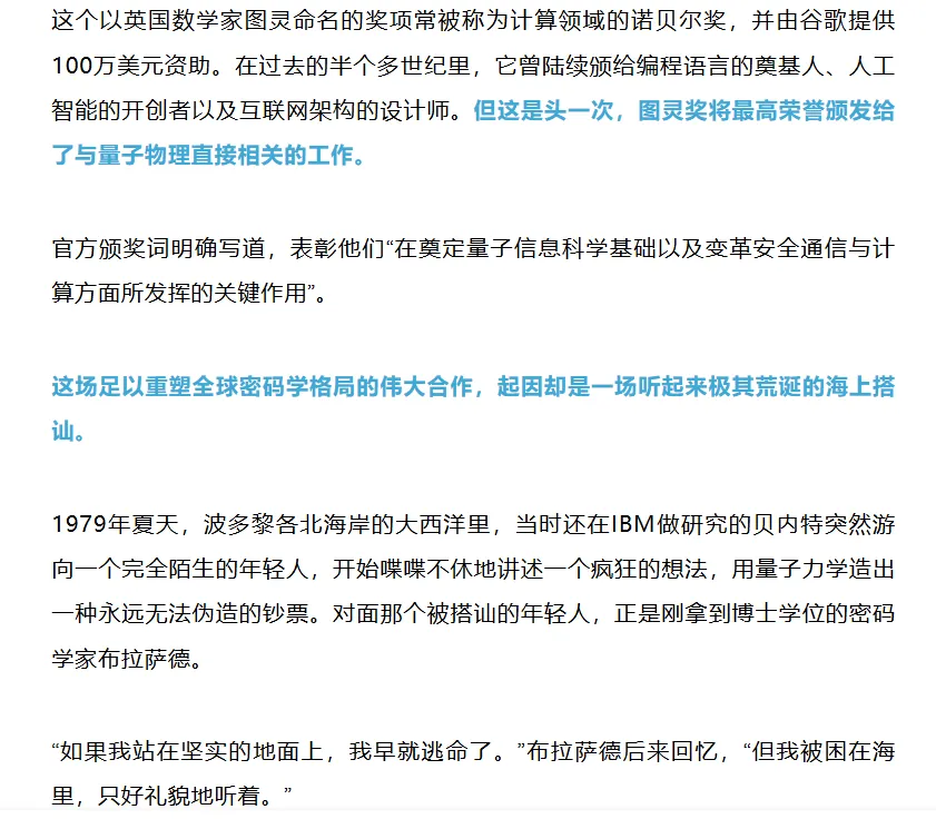 谁也没有想到,就是这两个泡在海水里的陌生人,用一次无处可逃的倾听开启了长达四十年的合作,硬生生催生出了今天被称为量子信息科学的整个学科。