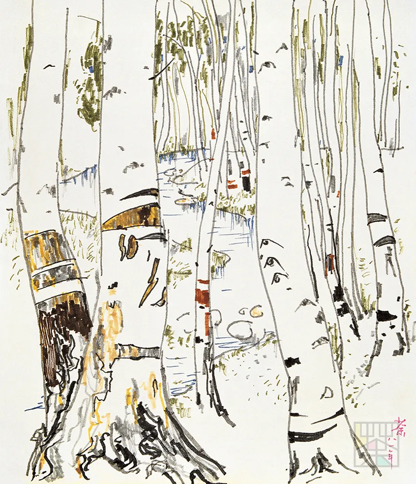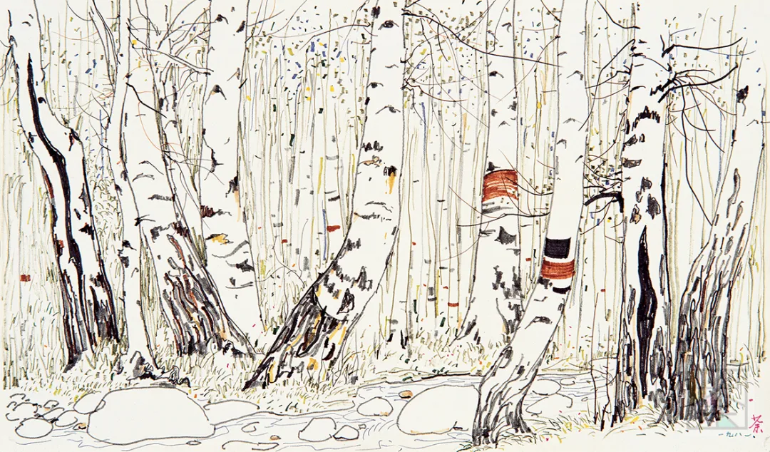 素描着色·钢笔、彩笔 28cmx48cm 1981年