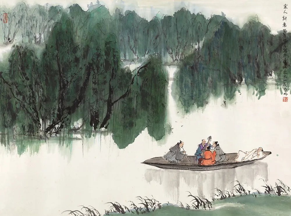 亚明 清江泛舟