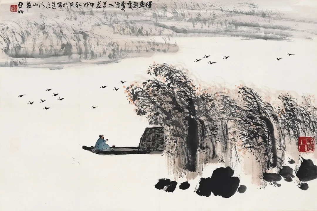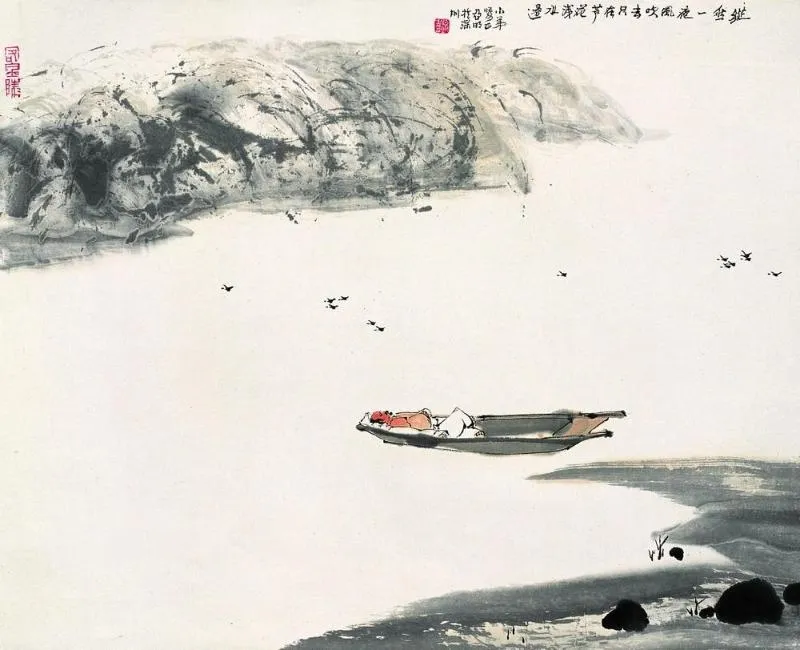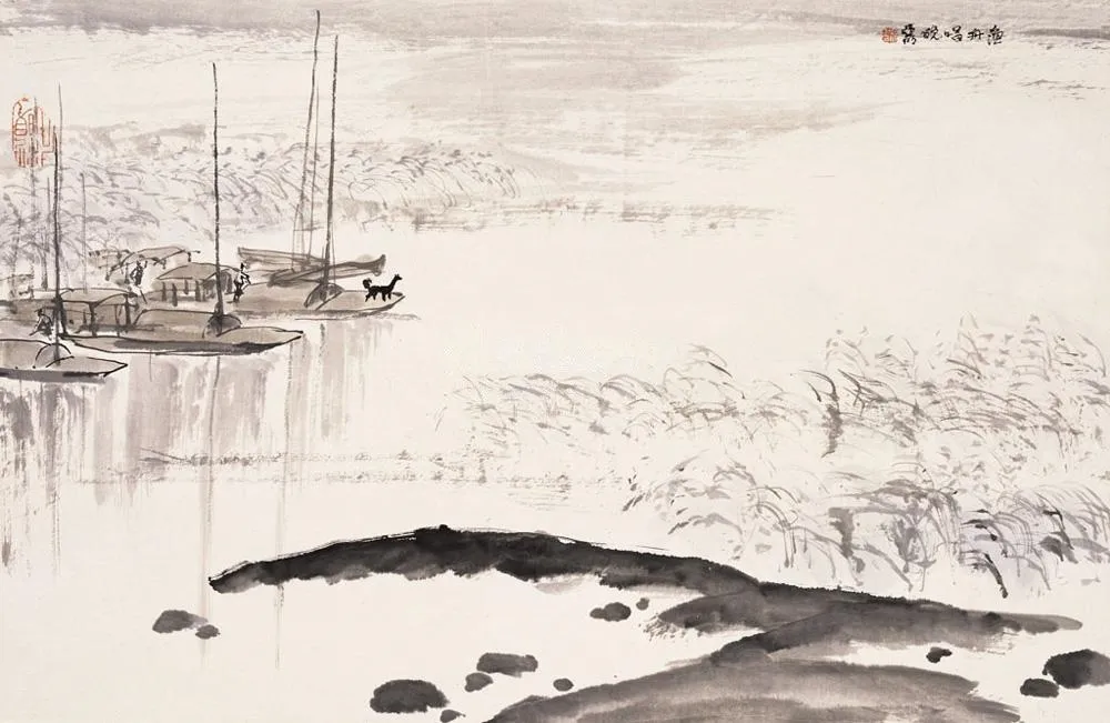 渔舟闲飘,静穆入画,诗与画之美于此悄悄相依。