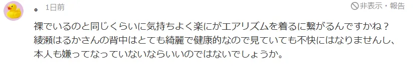 对此不少网友表示:我不理解,这广告绫濑遥是不是无效脱衣了,这上身真的裸的有必要么?甚至有人直接上演阴谋论,猜测绫濑遥是被资本逼着裸露……
