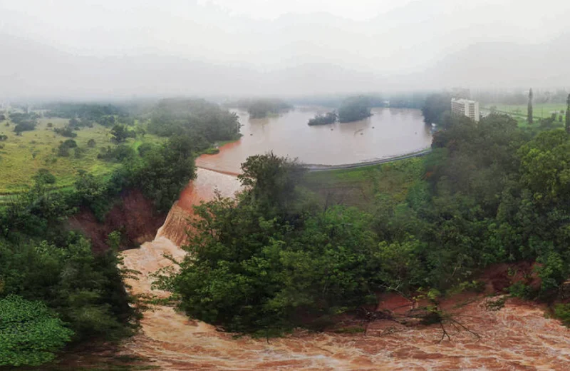 由于持续暴雨,水库水位已经上涨至85英尺以上,明显超过正常约80英尺的溢洪水平,水流正在以极高速度越过溢洪道向下游倾泻。一旦水坝发生溃决,下游的哈雷瓦和威阿卢阿将面临具有生命威胁的突发性洪水冲击,其破坏力将远超当前已发生的水灾。