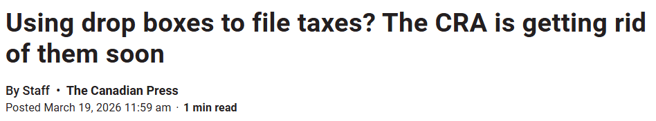 加拿大税务局(CRA)宣布,在本报税季结束后,将永久停用全国范围内数十个用于提交报税表、税款及其他相关文件的投递箱(drop boxes)。