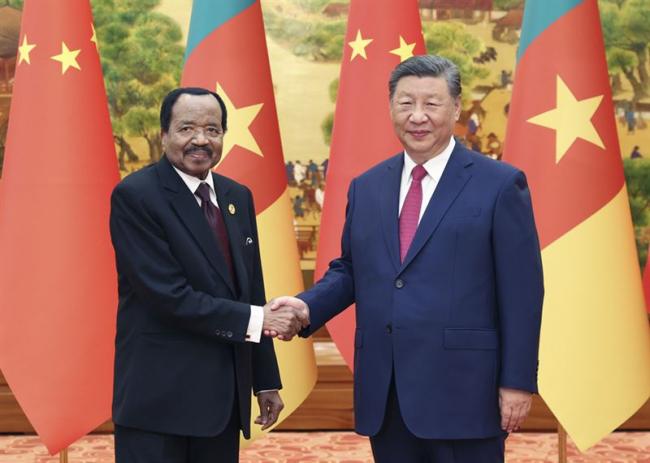 中国领导人习近平2024年在北京人民大会堂会见喀麦隆总统比亚。(图/翻摄北京市府官网)
