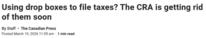 加拿大税务局(CRA)宣布,在本报税季结束后,将永久停用全国范围内数十个用于提交报税表、税款及其他相关文件的传统投递箱(drop boxes)。