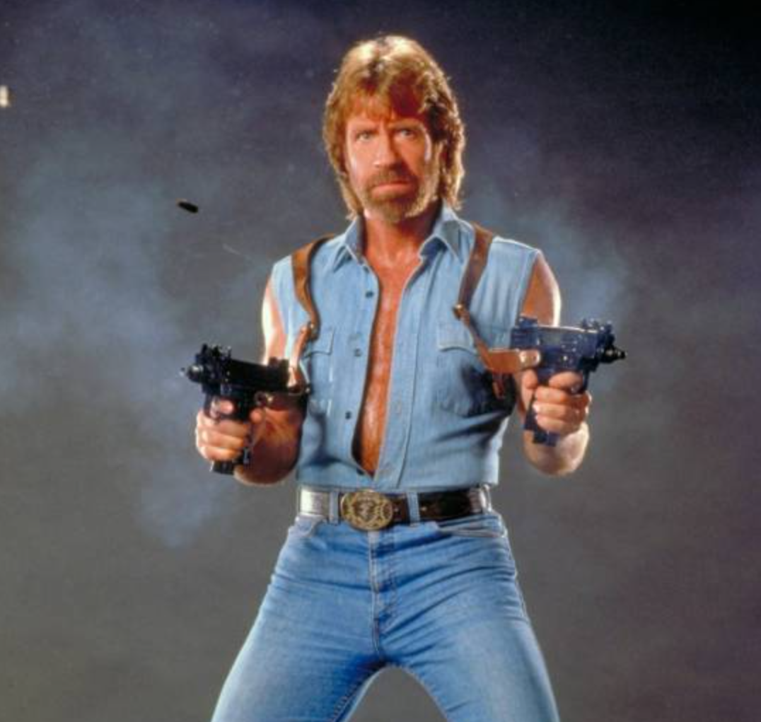 到了2004年前后,“查克・诺里斯段子”突然在网上病毒式传播,说白了就是一些烂梗,比如“查克・诺里斯和太阳比瞪眼,结果他赢了”、“他们想把查克・诺里斯的脸刻上总统山,但花岗岩硬度不够”。