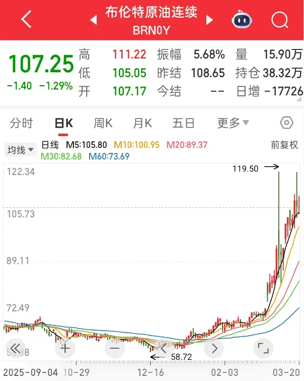 所以市场恐慌情绪被点燃,布伦特原油期货价格一路猛冲,直接突破了110美元。