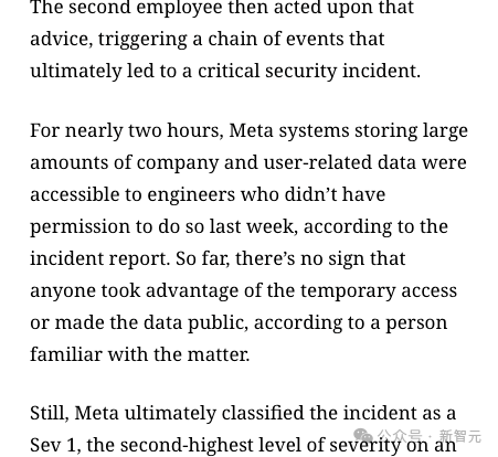 但最终,这起事件被Meta内部定级为Sev 1(接近最高等级)安全事故。