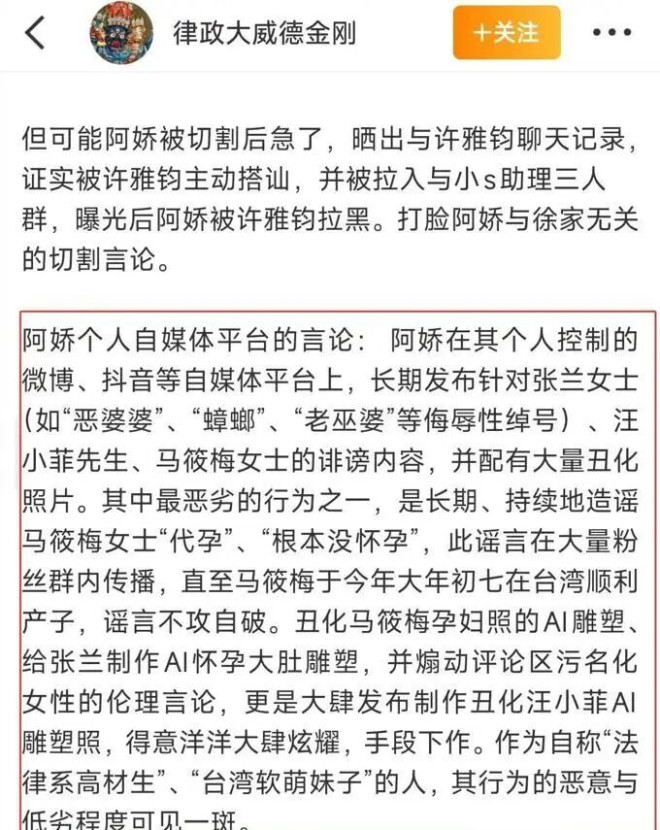 许雅钧组织粉丝网暴汪小菲,S妈急切割蔓娱