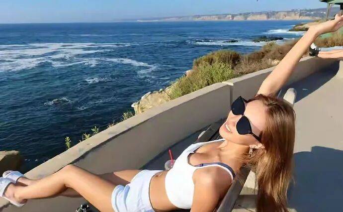 照片背景为加州海岸,阳光下的金色长发与小麦色肌肤形成鲜明视觉风格,被网友形容为“美式辣妹风”。