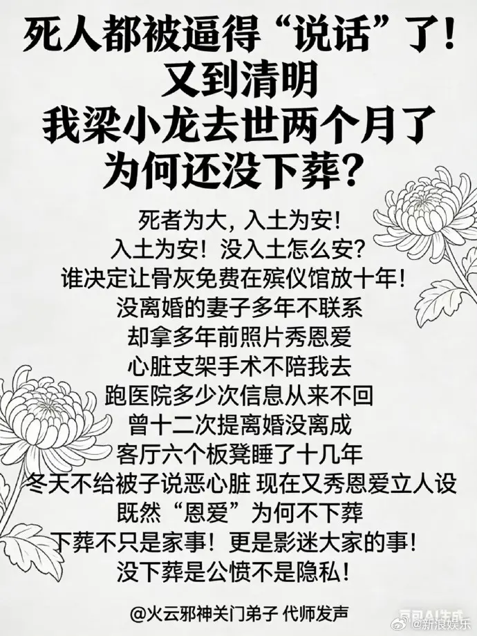 徒弟平头强调 “死者为大,入土为安”,称梁小龙生前明确表示要葬在深圳、希望坟前有树,从未同意海葬,“下葬不只是家事,更是影迷大家的事,没下葬是公愤不是隐私”。
