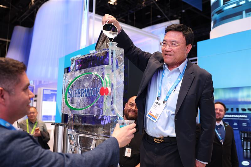 另一张照片中的廖益贤(Yih-Shyan “Wally” Liaw),正展示着美超微傲视业界的液冷解决方案。 他满脸笑容,一手持着银色水壶,优雅地将冷却液注入刻有“SUPERMICRO”Logo的巨大冰雕中。 这场充满仪式感的“液冷秀”,本意是强调散热效能与AI算力的结合,廖益贤甚至系着刻有公司名号的金属腰带,尽显自豪。 然而,这般风光在下一个瞬间,却成了最讽刺的定格----冷却液能帮服务器降温,却降不了美国司法部的执法怒火。