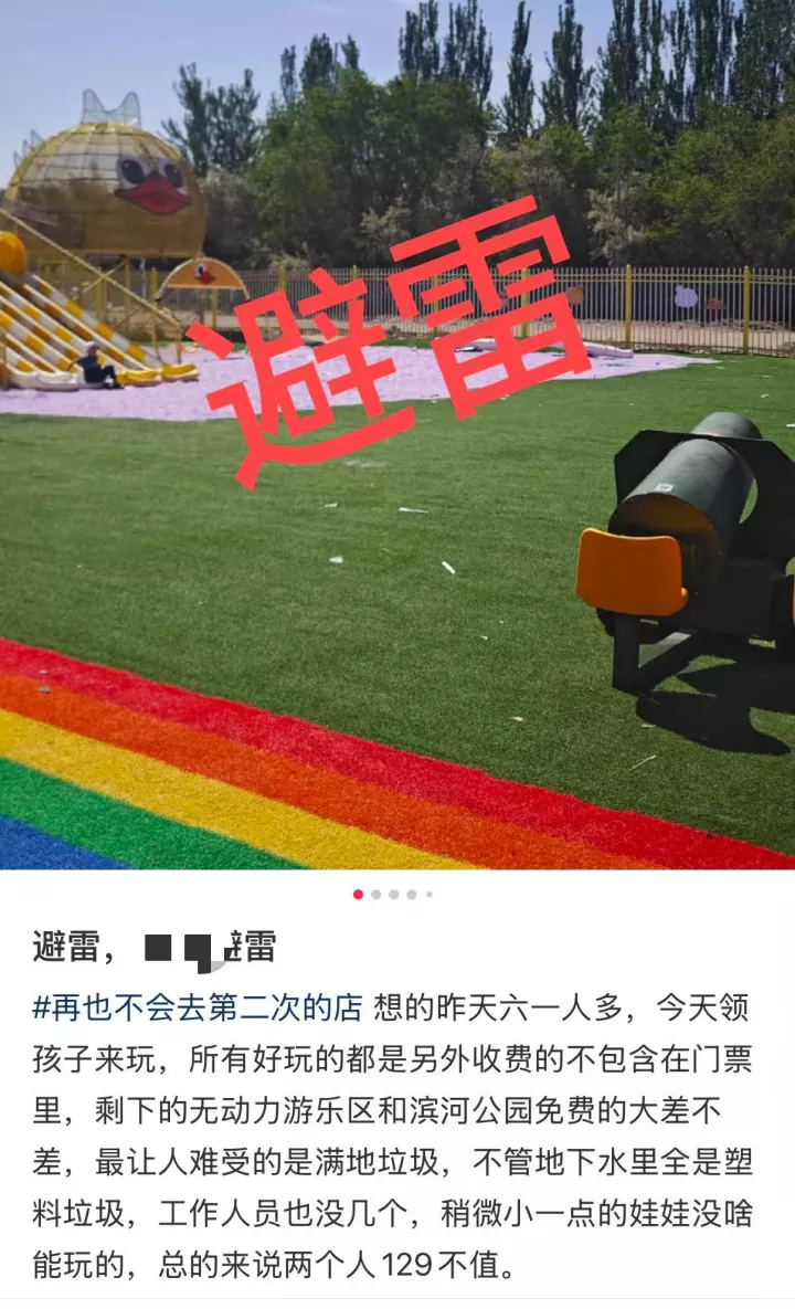另一种常见的野生游乐园选址思路,定位城郊,日常靠团购和同城直播揽客。而这类,则被归结为爱做功课家长的定向踩雷区。