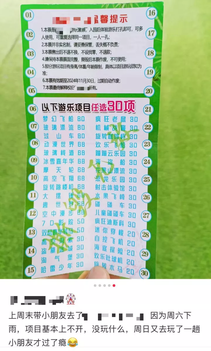 即便这些“老破大”设施、服务、体验都打折,玩下一天也能飞速榨出家长几百块钱。