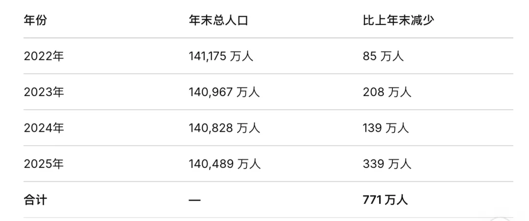 自2022年以来,过去四年全国常住人口累计减少771万。