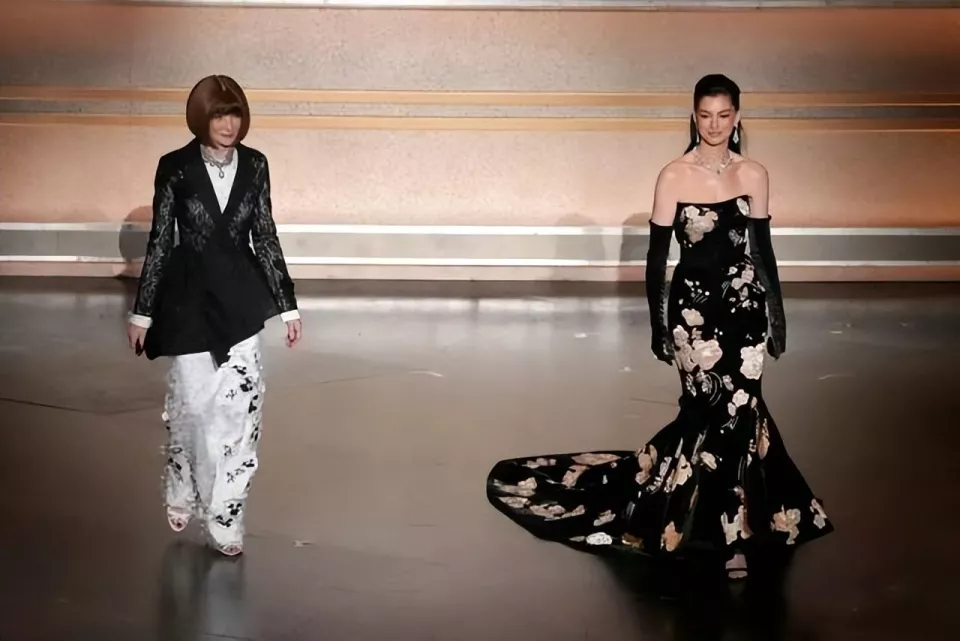 安妮海瑟薇当晚令人津津乐道的不只造型,还有她与安娜·温图尔同台颁奖的片段。