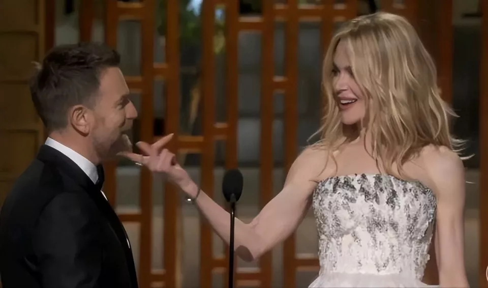 颁奖过程中,妮可调皮又大胆,直接用手指轻挑伊万的下巴,动作娇俏灵动,引得全场爆笑,伊万同样哭笑不得,二人自然亲密的互动,成为本届奥斯卡最甜、最戳人心的情怀名场面。