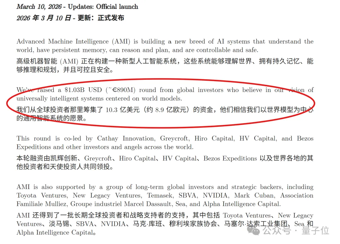 虽然仅成立4个月、团队仅25人,但AMI却在没有产品、没有收入、没有客户的“三无”情况下拿到了“AI领域有史以来规模最大的种子轮”——
