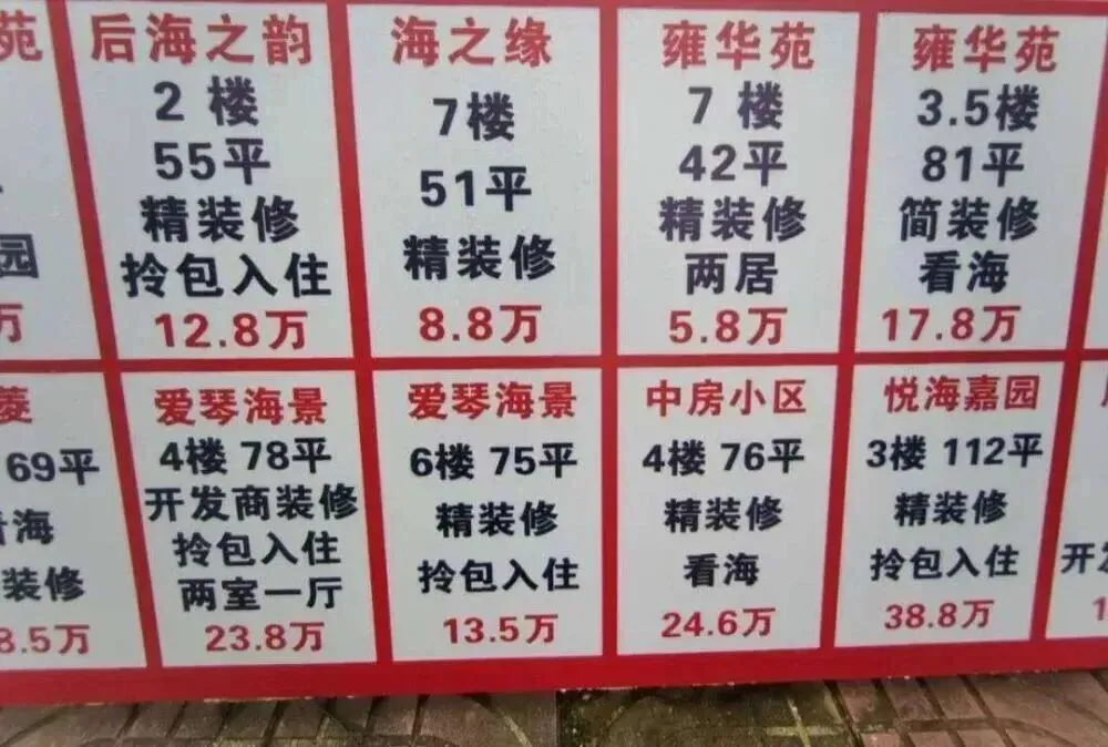评论区吵翻了天。有人喊“捡到大漏”,8万块圆了海景梦;有人急得敲屏幕,银滩的二手房本来就便宜,更何况是没电梯的4楼,爬两层就得喘,而且冬天没暖气,河南人了扛不住的。